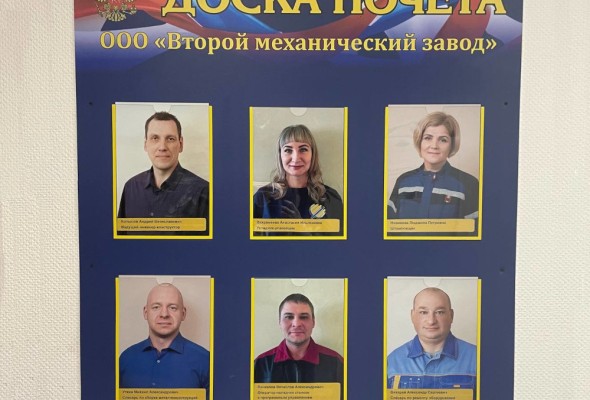 Лучшие работники этого периода получают почетную грамоту, премию и занимают место на нашей "Доске Почета" - это такой своеобразный зал славы нашего Завода.