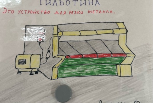 Эти маленькие художники почувствовали себя участниками большого производства, увидели, как создаются металлические стеллажи, и воплотили свои впечатления на бумаге.